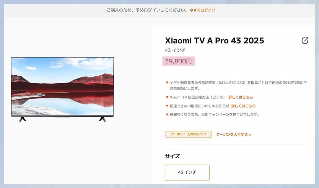 在日本走红的还有小米电视:2024年8月,小米在日本市场推出了一款售价不到4万日元(2千人民币)的43寸液晶电视,一上市便成为爆款。