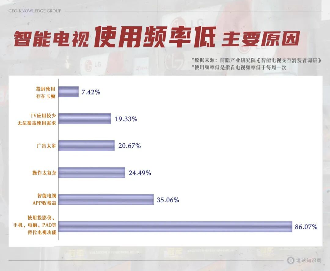 造成这一现象的原因不少,主要包括其他智能设备代替电视功能、智能电视APP收费高、操作太复杂以及广告太多等因素。